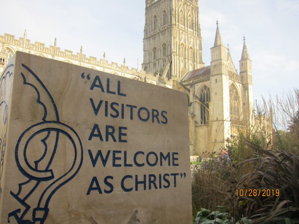 There are some large blocks of stone as you enter the cathedral grounds, each with a different message. There are some with messages of welcome, facing you as you arrive …